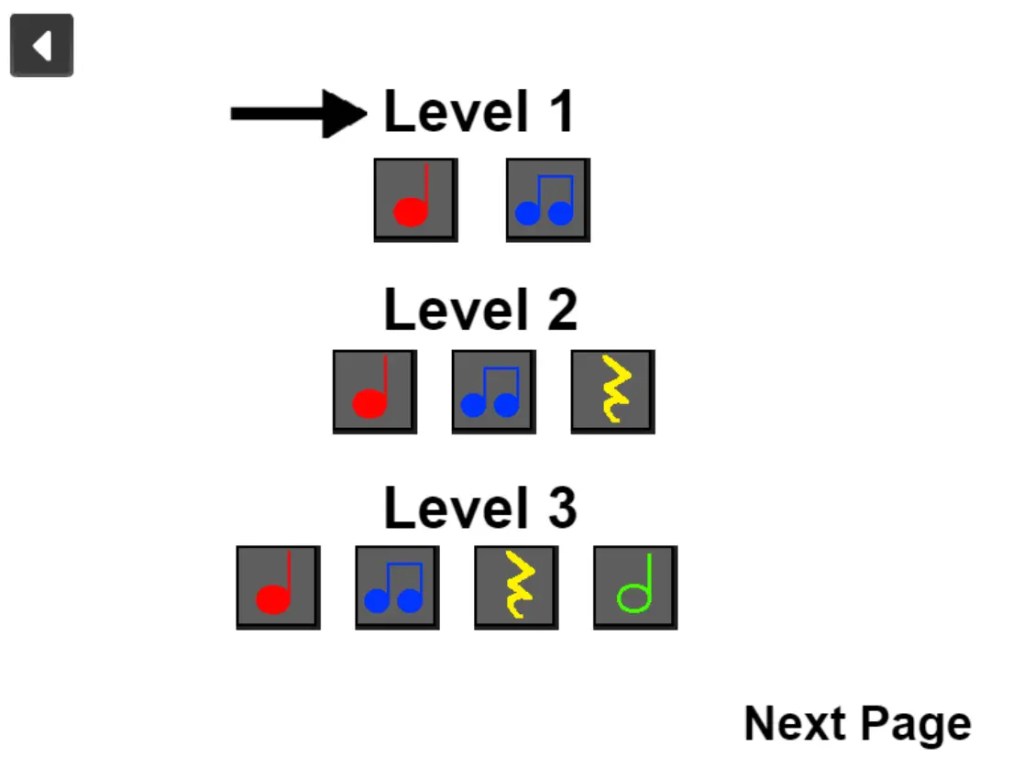 Version 1.0 – Levels 1-5 are working. This covers quarter notes, eighth notes, quarter rests, half notes, four sixteenth notes, and two eighth paired with two sixteenth notes. Endless is also working in beta mode (not finished). It also works with one level.