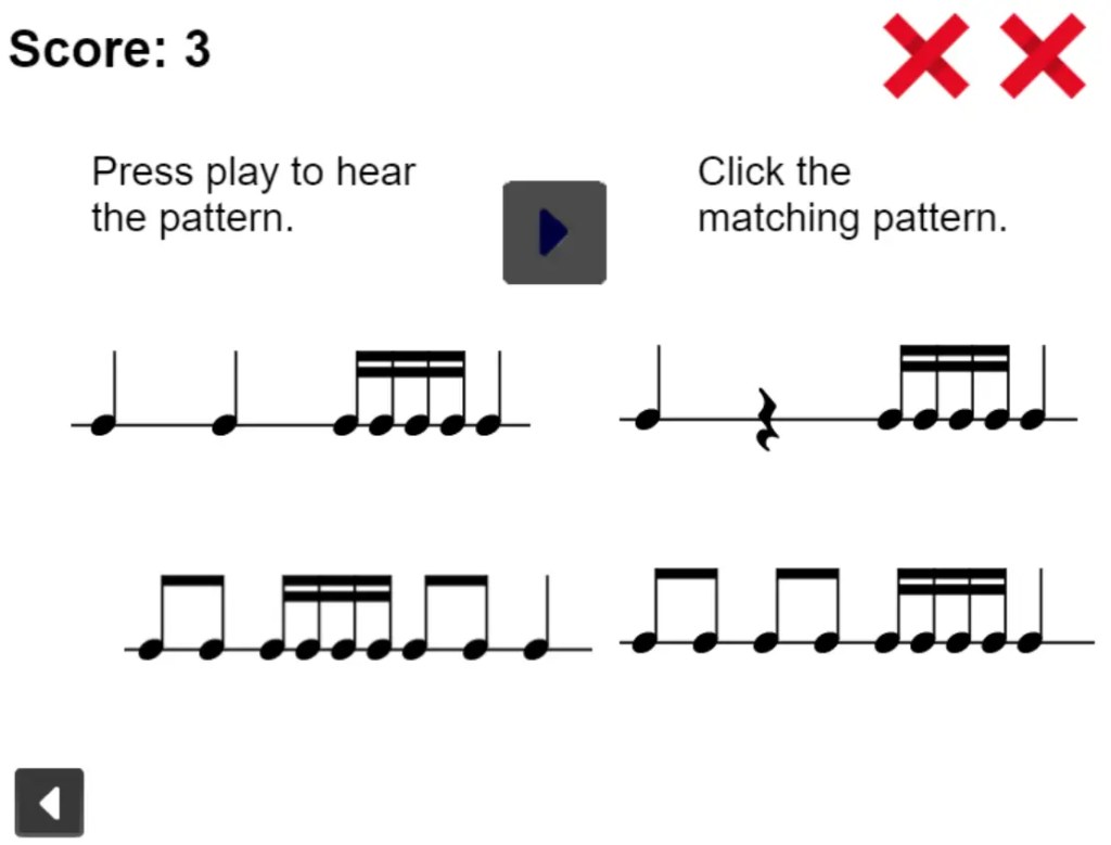 Rhythm Match is a simple game for testing rhythm listening and reading skills. Listen to the pattern, click the correct rhythm, and avoid getting three strikes!